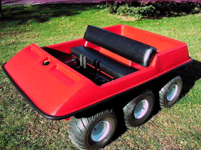 El conjunto del motor iba sobre un pequeño bastidor, el cual estaba unido, a su vez, a la carrocería, que era de fibra de vidrio y de 2 metros de largo. Esta última era completamente estanca. Los agujeros por los que pasan los ejes de las ruedas llevan sus correspondientes retenes, que impiden la entrada de agua. Los enormes neumáticos -se hinchan a tan solo 0,250 kg/cm² - conferían al vehículo un aspecto simpático.[1]