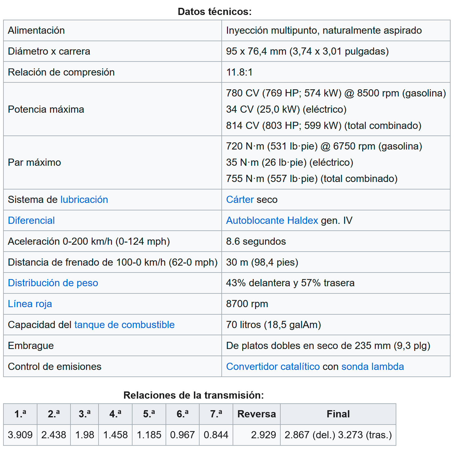 Especificaciones