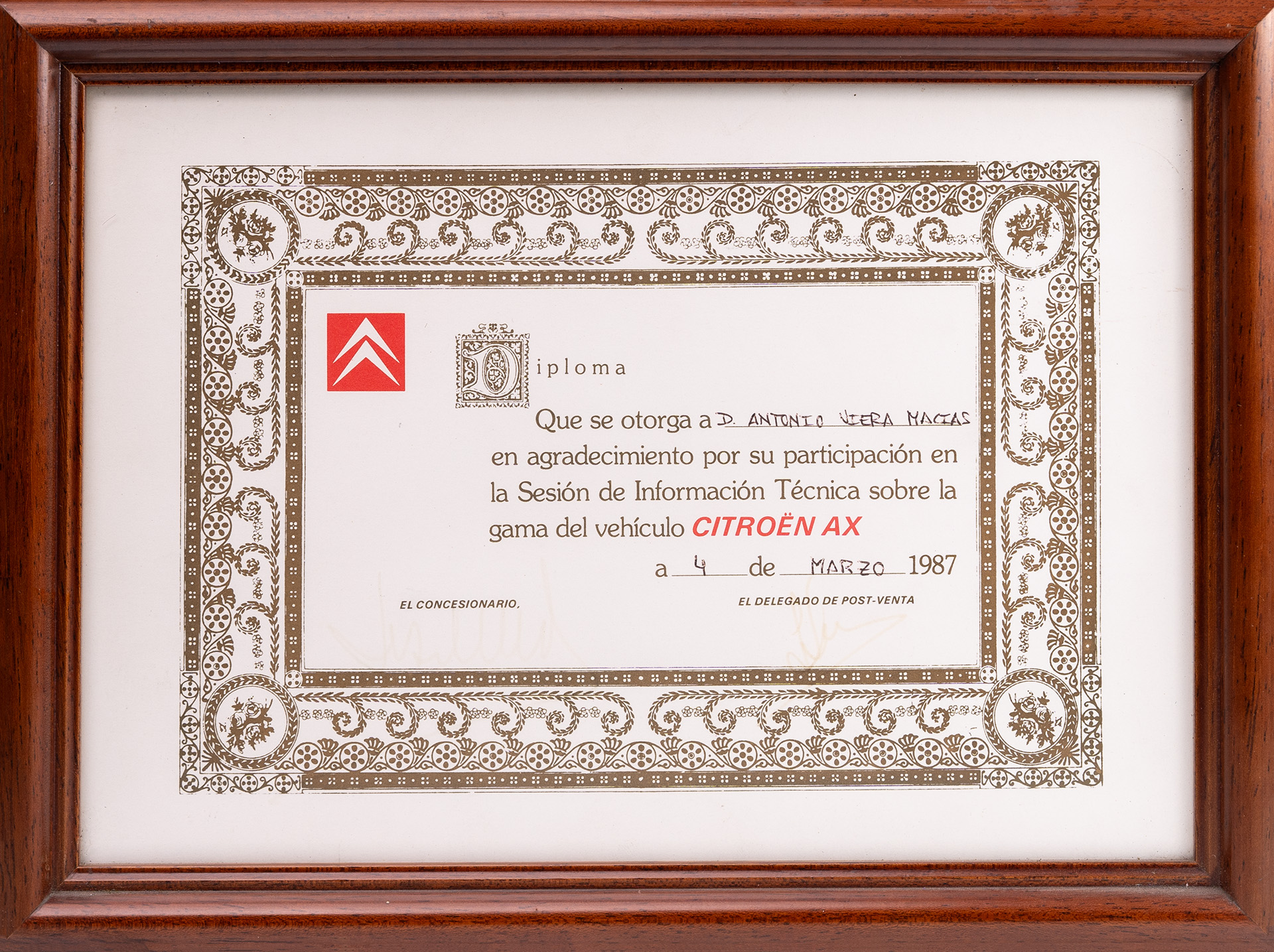 - Asistencia a un curso especializado en mecánica y electricidad del Citroën Visa II en la fábrica de Vigo.