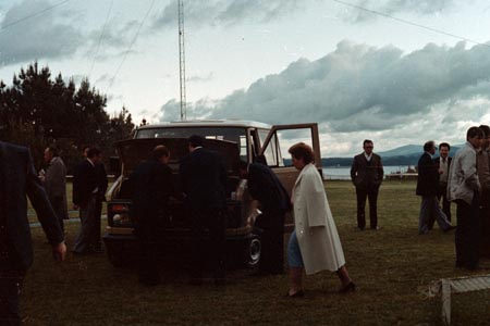 Al día siguiente nos dirigimos hacia la Isla de la Toja, donde, apenas llegar, quedamos impresionados por el nuevo Citroën BX. A primera vista, era evidente que sería un gran éxito para la marca. Nos ofrecieron una completa explicación sobre todos los aspectos del modelo y, mientras disfrutábamos de un vino acompañado de su respectivo pincho, la música de gaiteros gallegos puso el toque tradicional al ambiente.